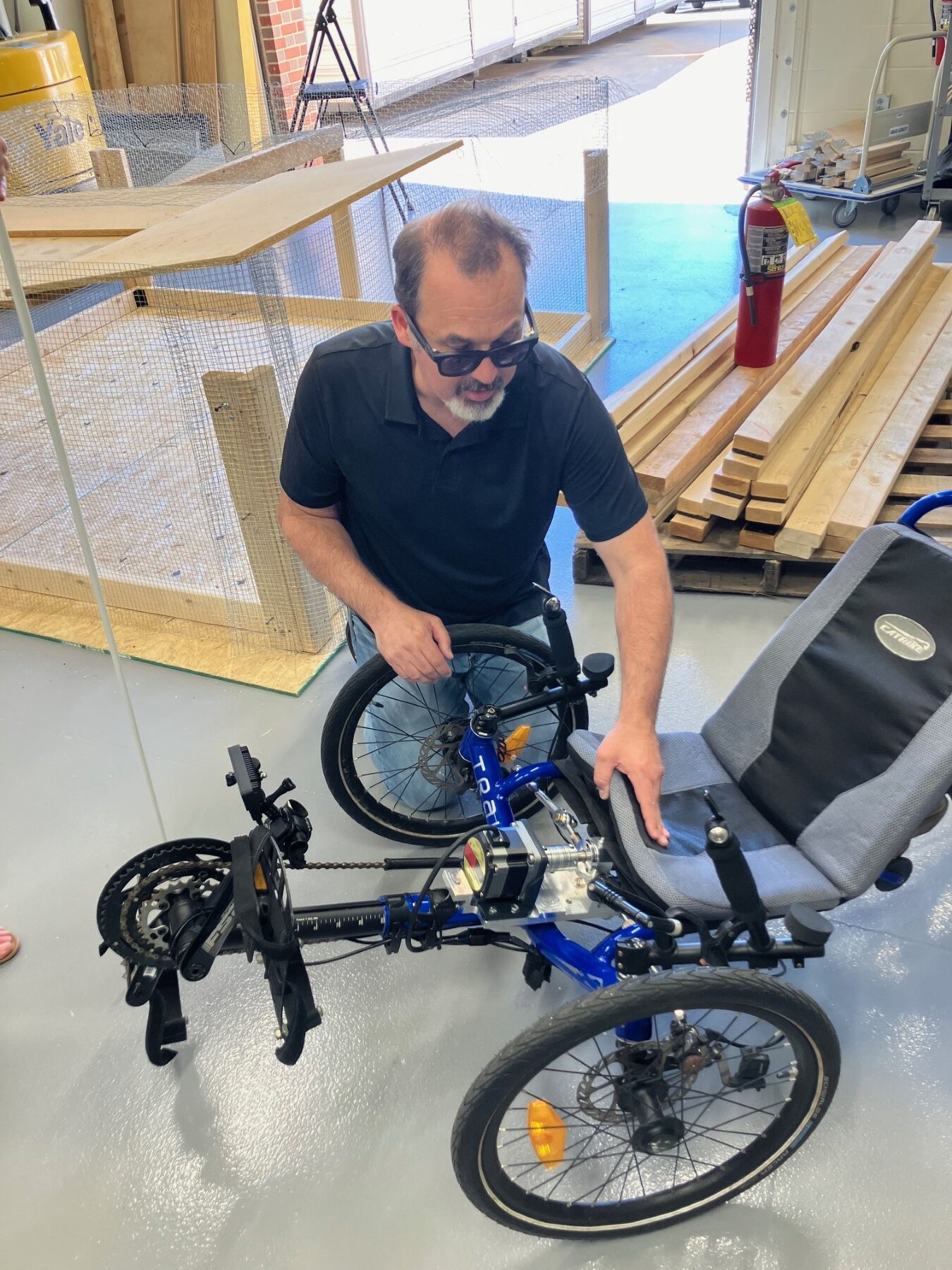 Around the same time Boston University committed to the self-driving bike project, I shared another dream with my longtime friend and fellow racer, Johnny Pilcher—a system that would allow blind riders to bike alongside friends or family. Johnny’s daughter, Shay, happens to work at Auburn University, just 45 minutes from my home. She connected me with a professor and a team of engineering students, and together we began shaping this new vision.