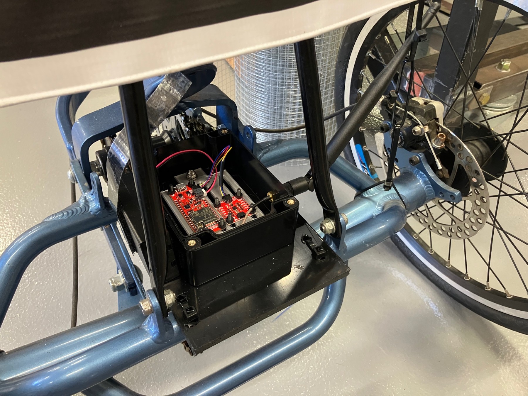 To help get things started, I donated two recumbent bikes—a tadpole (two wheels in front, one in back) and a delta (two in back, one in front)—along with a junior dragster rack and pinion and other parts. The students began work in the fall of 2024, building the hardware, electronics, and batteries, then diving into the challenge of coding. The computer determines the distance between bikes by analyzing the fiducial’s size, while the lead rider handles navigation and obstacle avoidance.